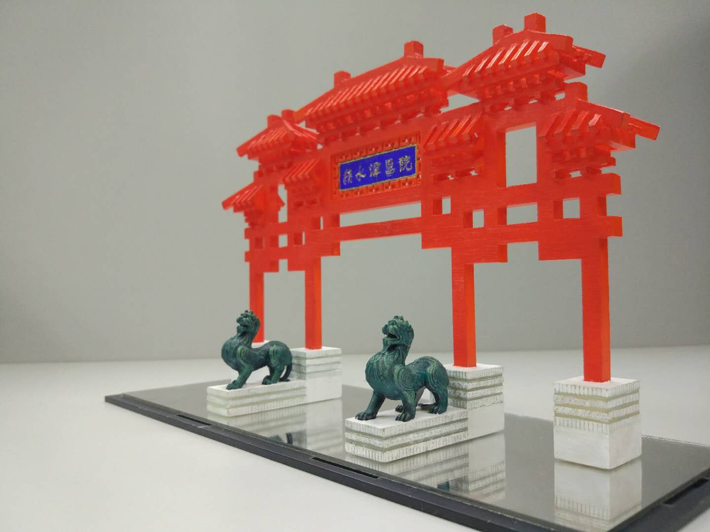 在積水潭醫(yī)院禮品定制的方案中,我們考慮到客戶要趕在開會前準備好禮品,而距離開會的時間只有5天。工期和成品的數(shù)量都是我們要克服的困難。秉承心系顧客,加急服務(wù)的理念,能讓客戶在會議前順利拿到禮品,我們使用三維掃描儀快速獲取到了牌樓的原始數(shù)據(jù),三維模型設(shè)計人員利用3DMAX等軟件對掃描原始數(shù)據(jù)進行處理,為3D打印爭取了時間。3D打印可以同時打印多個產(chǎn)品。打印后的模型經(jīng)過后期的打磨和上色處理。我們在客戶要求的時間內(nèi)完成了50件成品,成品一次通過驗收??蛻魧τ谖覀兊姆?wù)質(zhì)量和產(chǎn)品效果十分滿意。