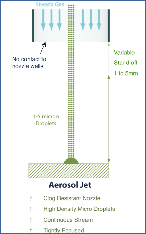 Optomec 是Aerosol Jet 氣溶膠噴射技術(shù)的擁有者。氣溶膠噴射系統(tǒng)使用新的技術(shù), 能夠在大容量和多種使用模式下打印微米級(jí)電子產(chǎn)品,包括在2D或3D表面上打印電路或組件。