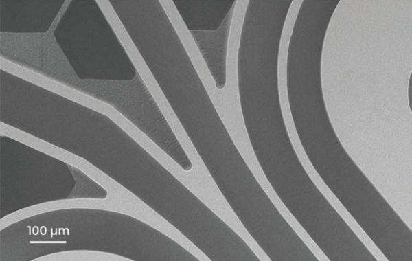? ? ? 日內(nèi)瓦齒輪是一種任意形狀的微機(jī)械部件,是產(chǎn)生間歇性旋轉(zhuǎn)運(yùn)動常用的裝置之一。包含兩個相互嚙合的元件。通過將一個齒輪旋轉(zhuǎn) 360°,另一個齒輪以固定的 90°增量移動。? ? ? 使用 SLE 技術(shù),這些機(jī)構(gòu)可以由單片玻璃制成,而不需要組裝步驟。由于無需組裝該結(jié)構(gòu)可以小規(guī)模生產(chǎn)(低至數(shù)百微米)而無需復(fù)雜的微操作。此外,通過將一個小磁體連接到機(jī)構(gòu)上并將其放置在旋轉(zhuǎn)磁體上,可以實(shí)現(xiàn)結(jié)構(gòu)的平穩(wěn)連續(xù)運(yùn)動。這是由于結(jié)構(gòu)的不同運(yùn)動部件之間的間隙非常小 (<10 μm) 和很好的表面粗糙度 (~200 nm RMS) ,更大限度地減少了過度摩擦。