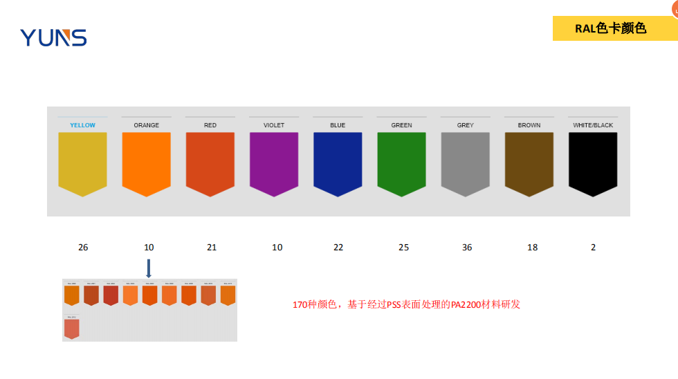 1. 浸染顏色的色卡材料都是進口EOS的PA12來做的,使用其他材料也會造成顏色偏差;