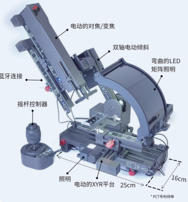 電動化2D/3D顯微鏡和模塊化成像系統(tǒng)采用緊湊設(shè)計,配置4K相機;曲面LED矩陣、環(huán)形LED和帶數(shù)字控制的高功率LED;雙軸傾斜與位置反饋3D成像系統(tǒng)等,成像范圍從 1μm 到 10 cm,可通過搖桿、觸摸開關(guān)、電腦或智能手機控制。