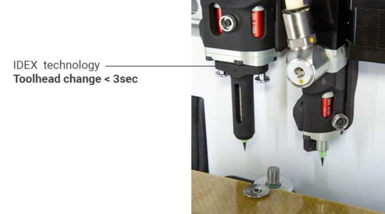 S300X-LIQ21LIQ11采用IDEX(獨立雙擠出)技術(shù)設(shè)計,配置單組份和雙組份工具頭,LIQ21用于擠壓雙組分材料,LIO11 用于擠壓單組分材料。特別是完全可溶的支撐材料,能夠打印復(fù)雜的幾何形狀,對形狀沒有限制。