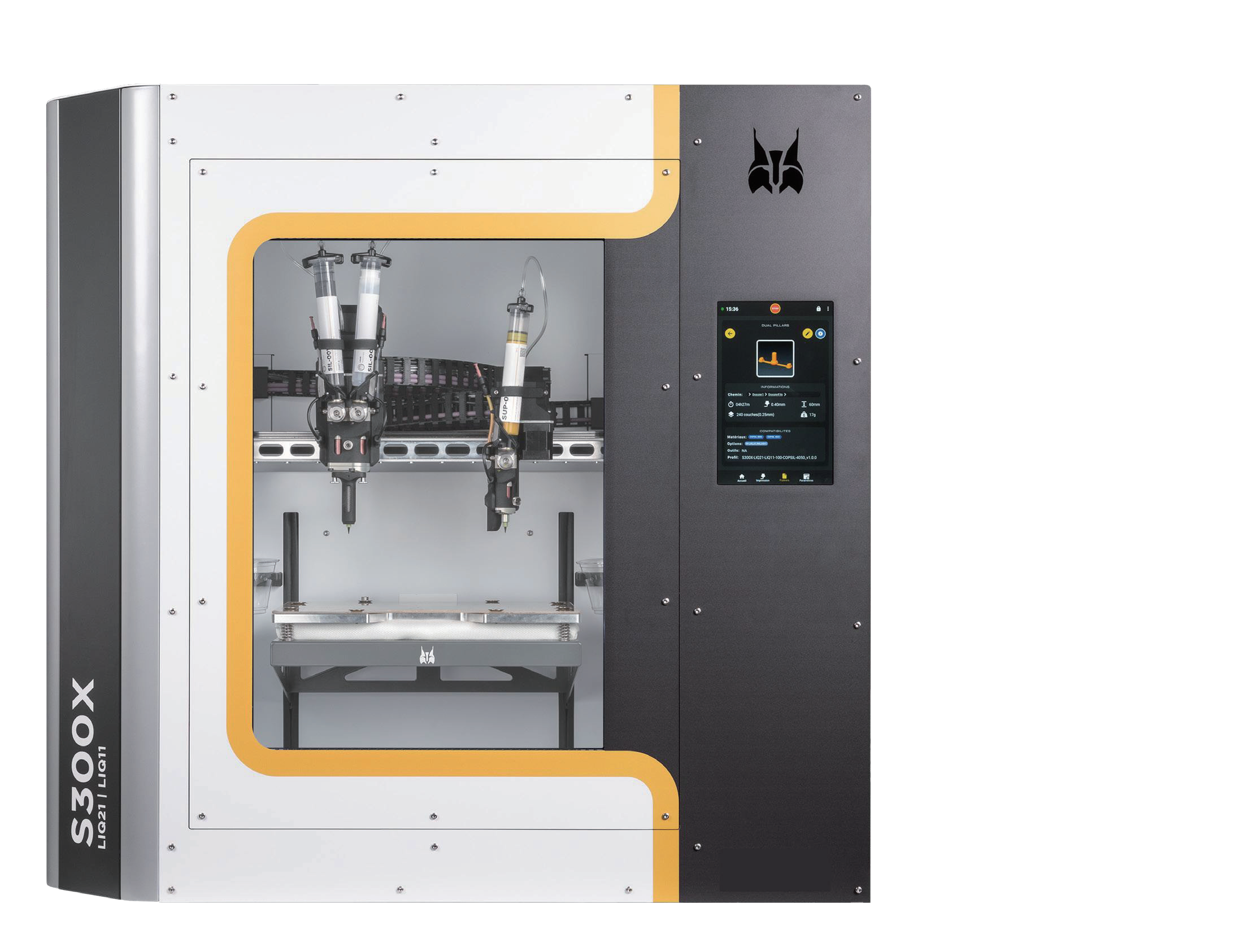 S300X-LIQ21|LIQ11 在緊湊的尺寸中結(jié)合了堅固性、精度和工業(yè)效率,適合任何工作空間。大容量墨盒允許在自主的情況下對大部件或幾個小部件進(jìn)行硅膠打印,從而減少了干預(yù)的需要。